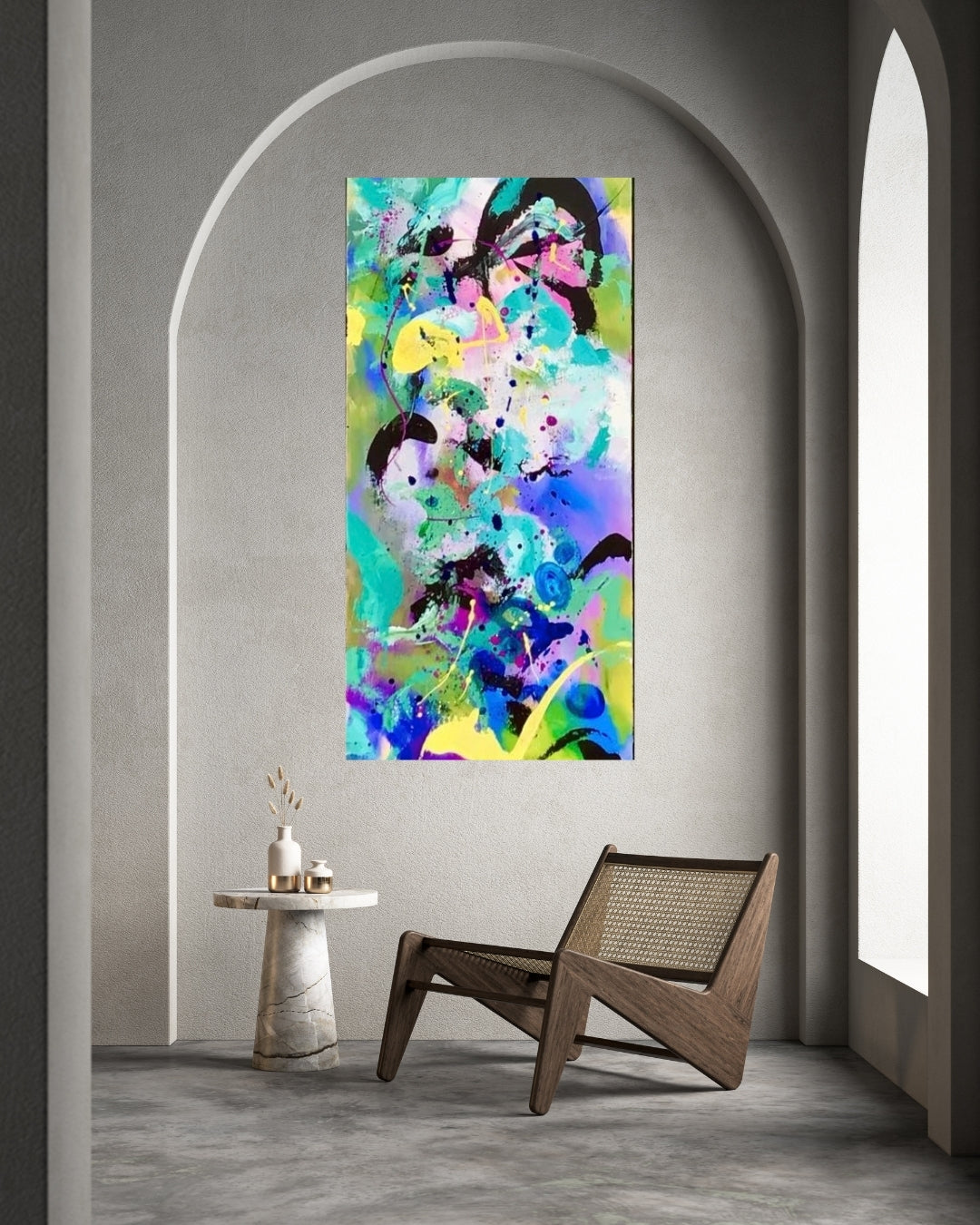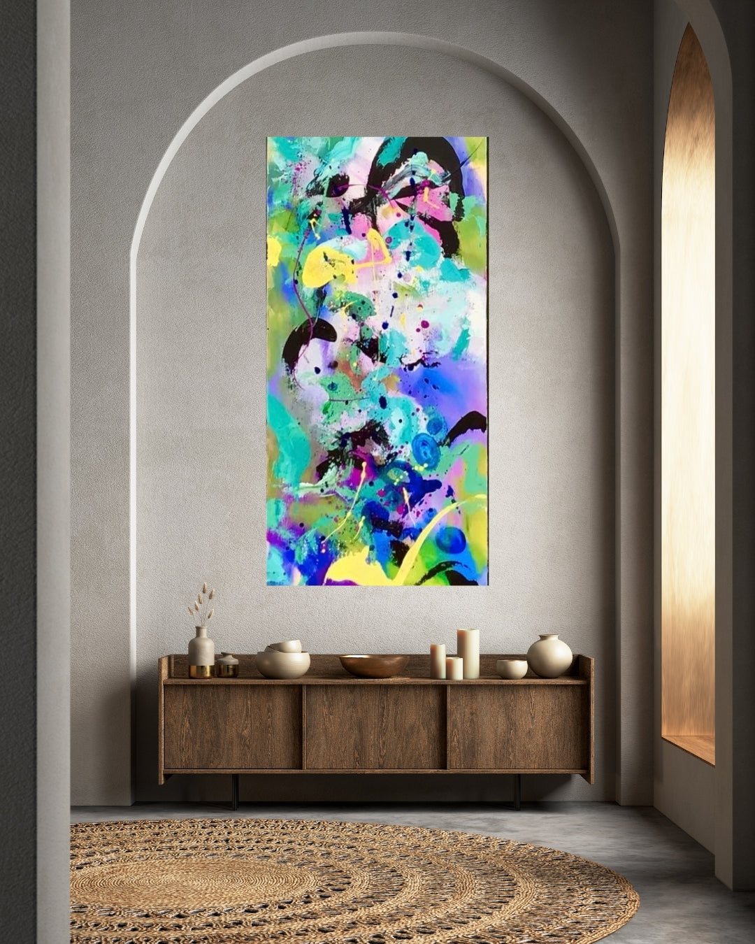 “Lyst Sind” er et lyst og legende akrylmaleri, hvor farverne løfter stemningen og giver plads til det lette i livet. Et værk med bevægelse og optimisme – skabt med et åbent sind og en fri pensel.