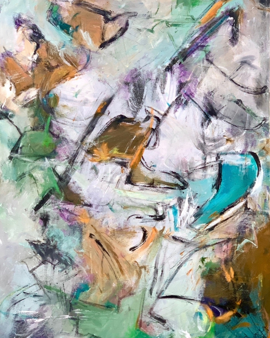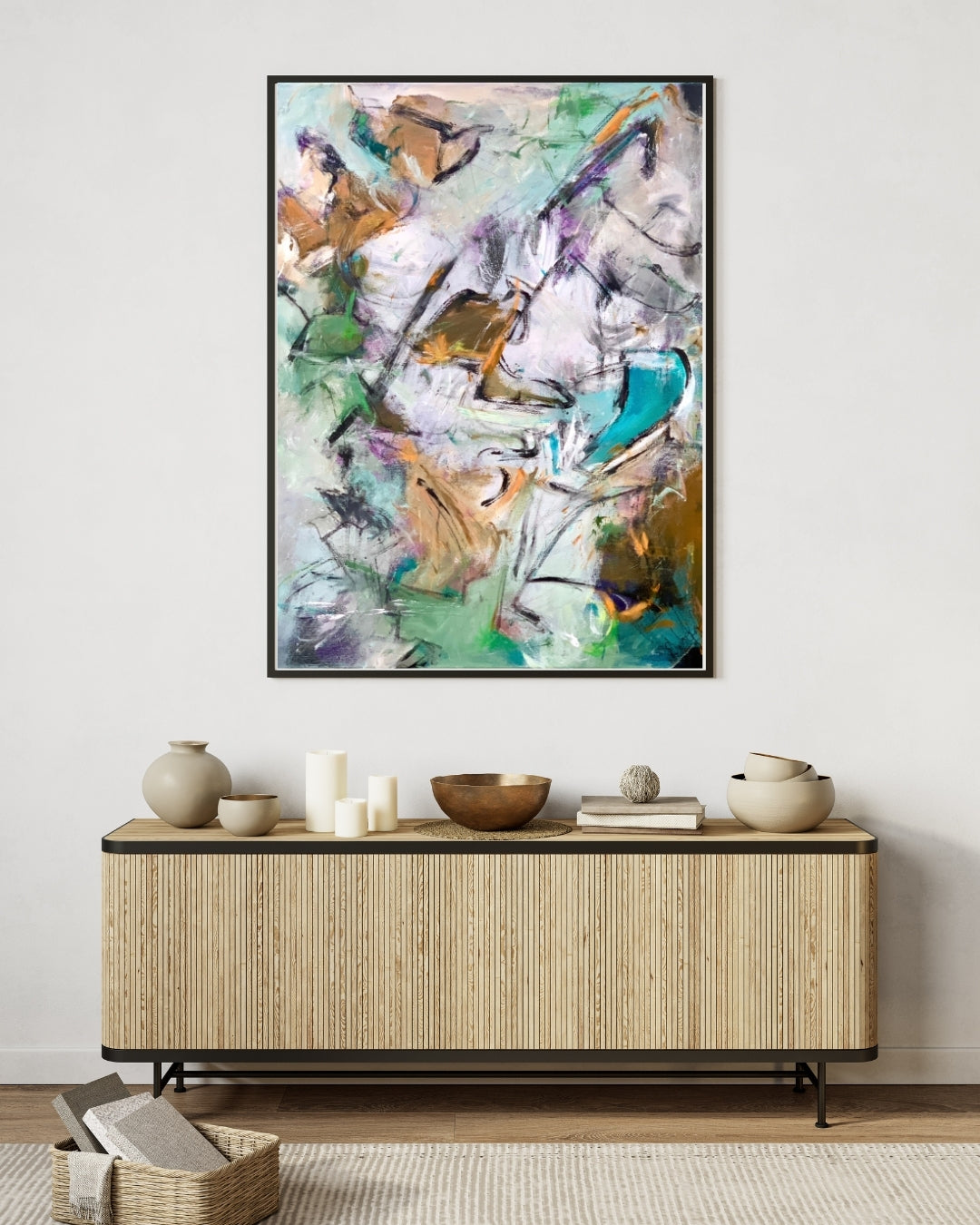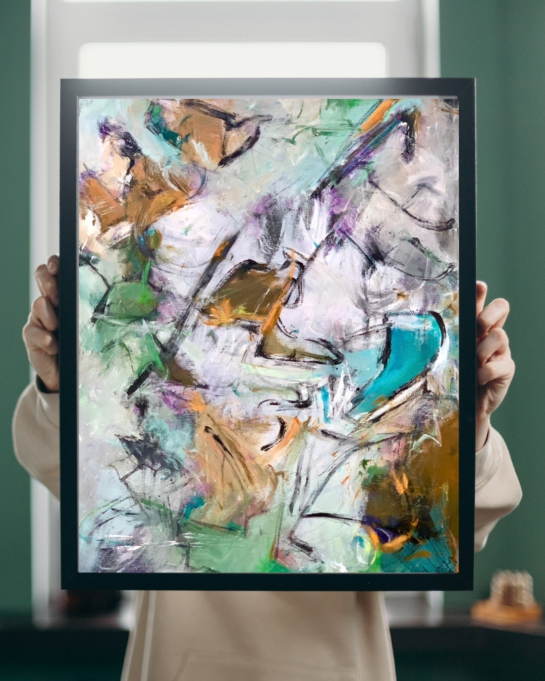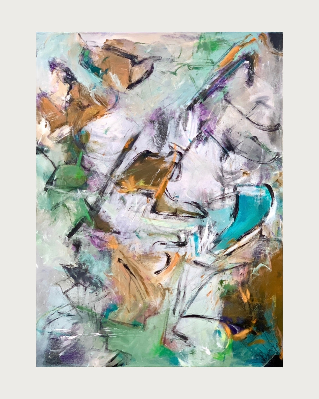 Dream 2 er malet intuitivt med hånd, spartel og andre redskaber for at frembringe en levende og energisk komposition. De bløde bevægelser og kontrastfyldte farver giver værket dybde og personlighed – og det fungerer smukt både med og uden ramme.