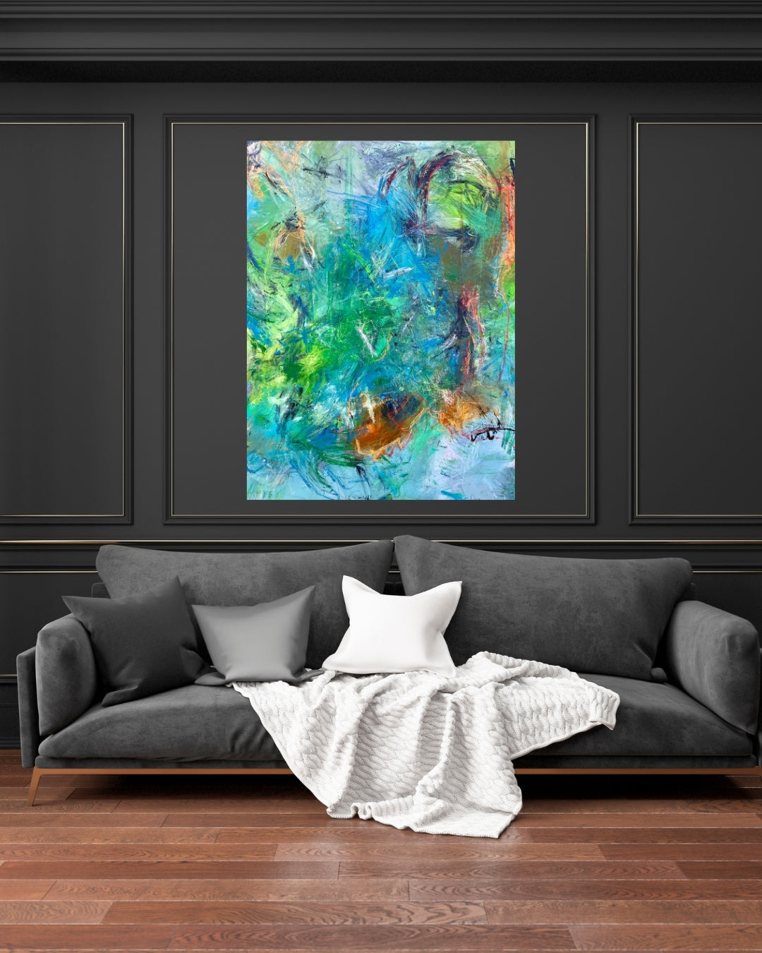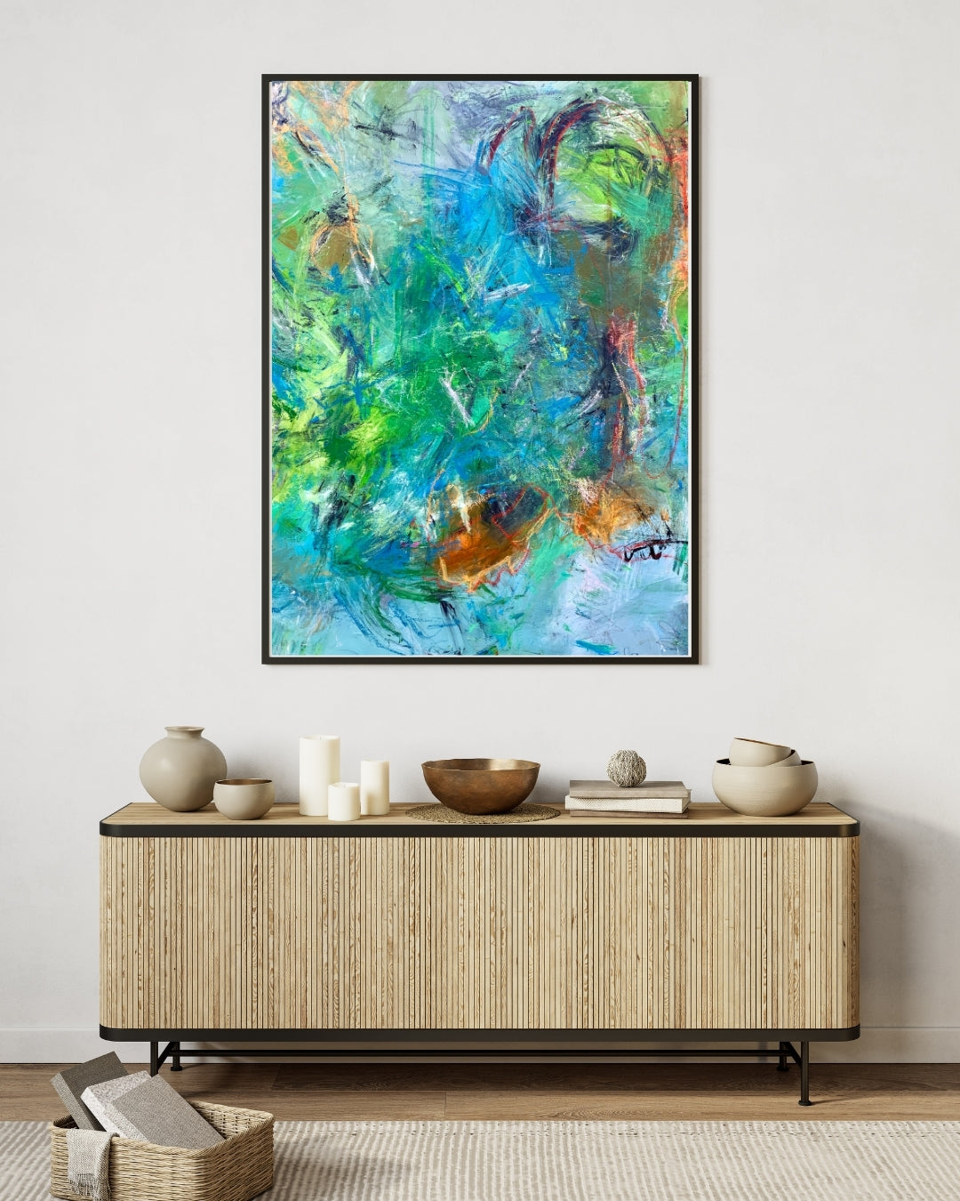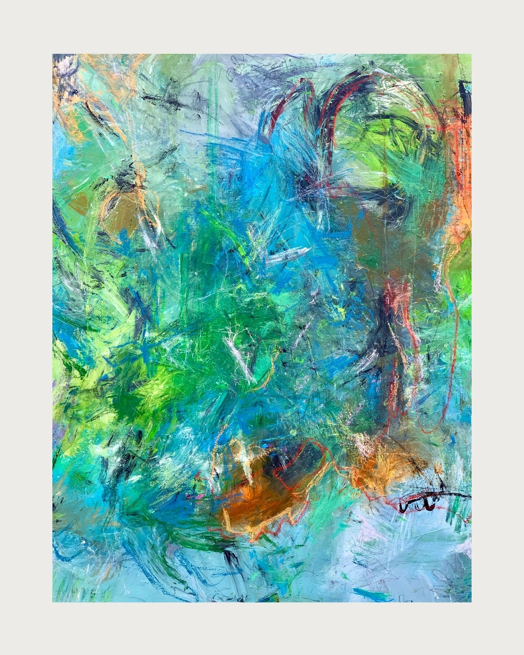 Dejligt stort abstrakt maleri, malet i mange lag og over flere omgange. Værket inviterer dig til at lade øjnene hvile og sindet slappe af – uden behov for fortolkning. Det er skabt med fokus på ro og mindfulness, hvor farvespillet og kompositionen giver en balanceret og harmonisk oplevelse.