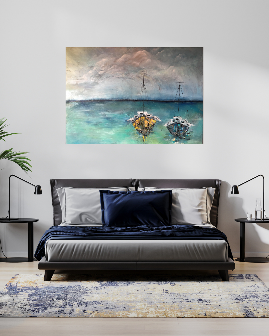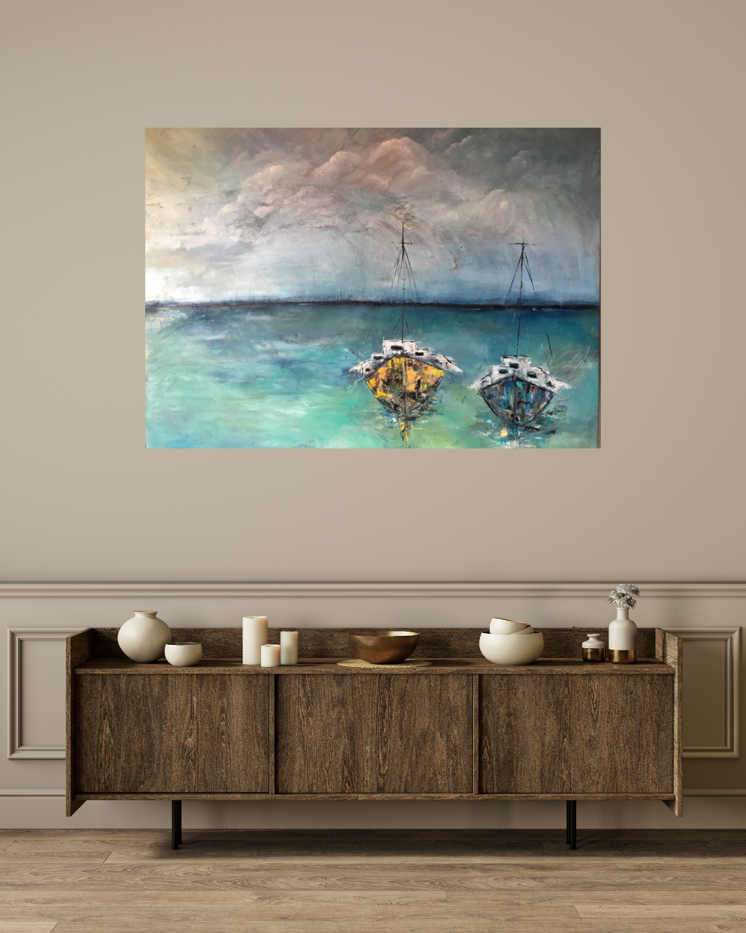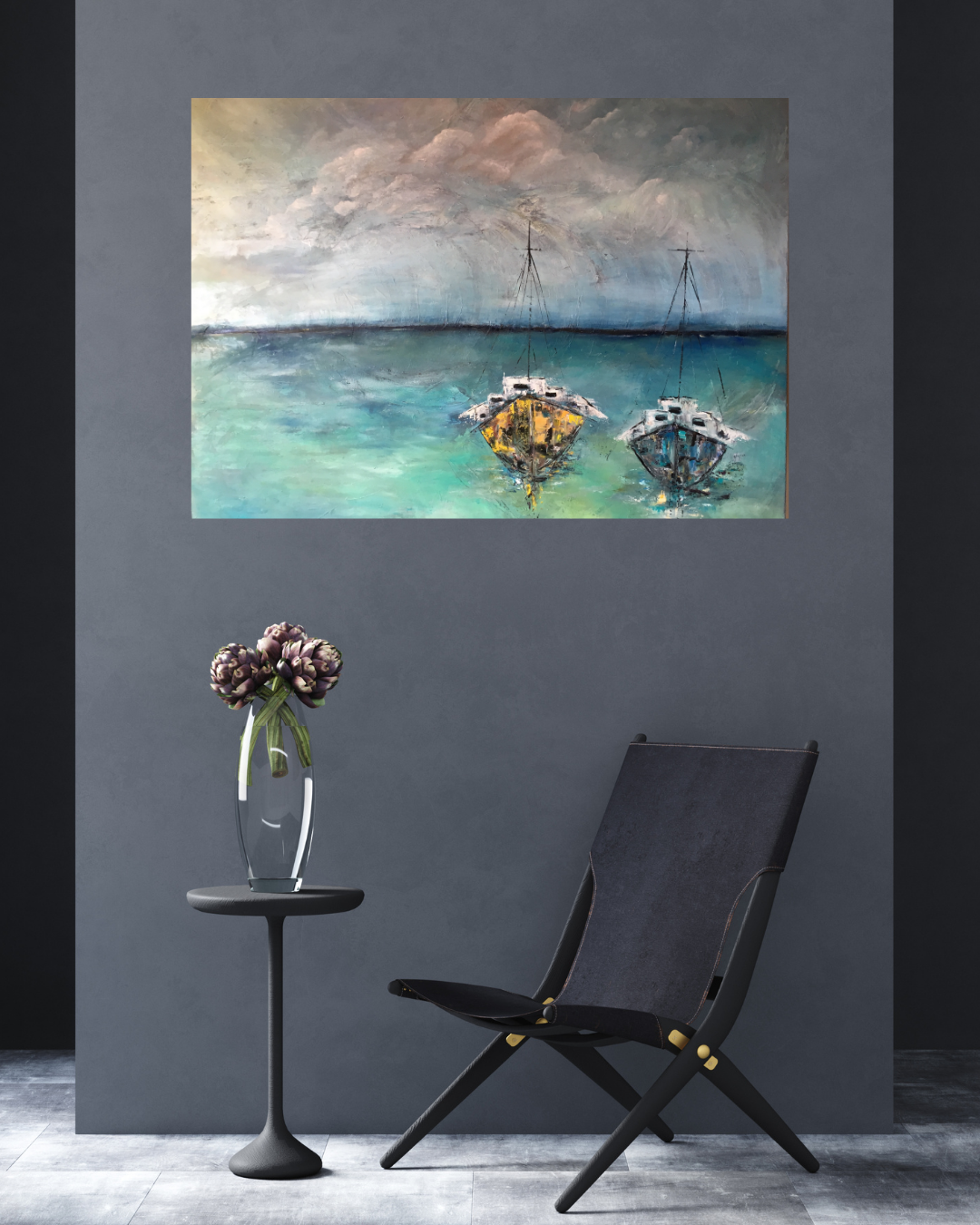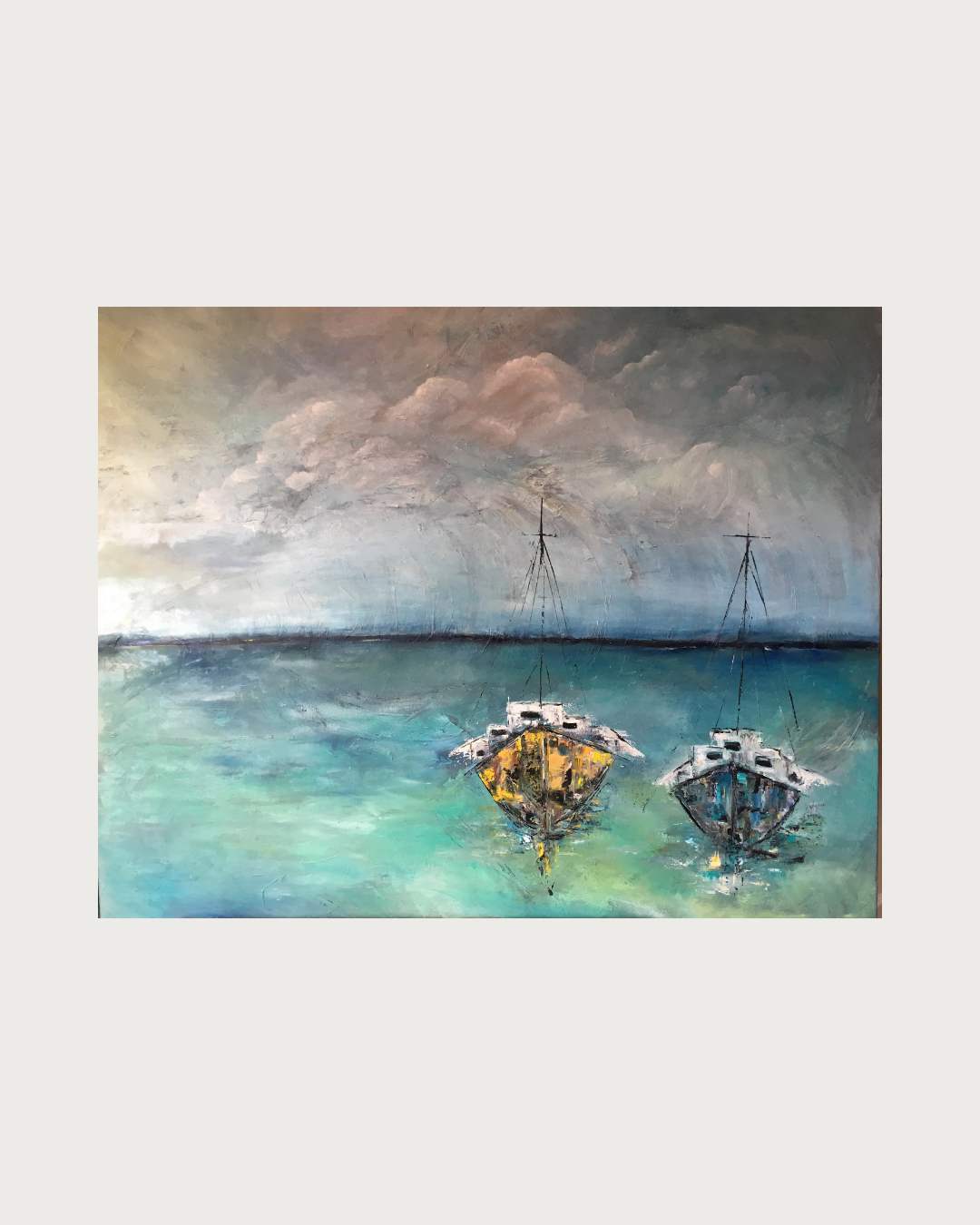 Oliemaleri med et strejf af abstrakt fantasi. Malet i flere lag med olie, hvor farverne er nøje afstemt og spiller harmonisk sammen. Kanterne er malet, men ønsker du en ramme, sætter jeg gerne en på mod et mindre tillæg.
