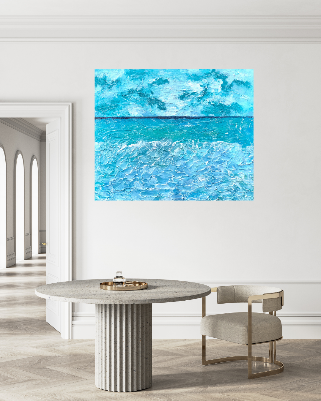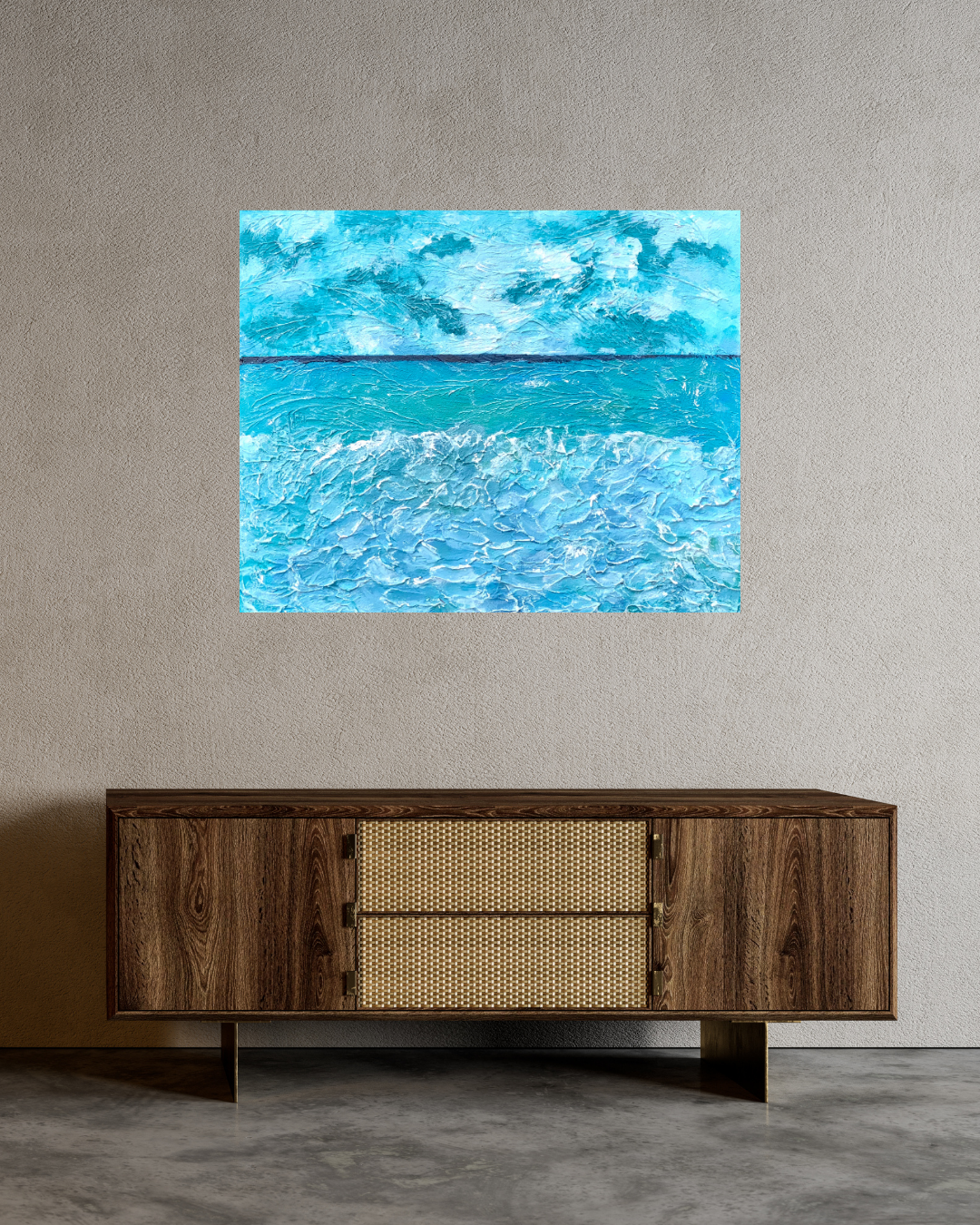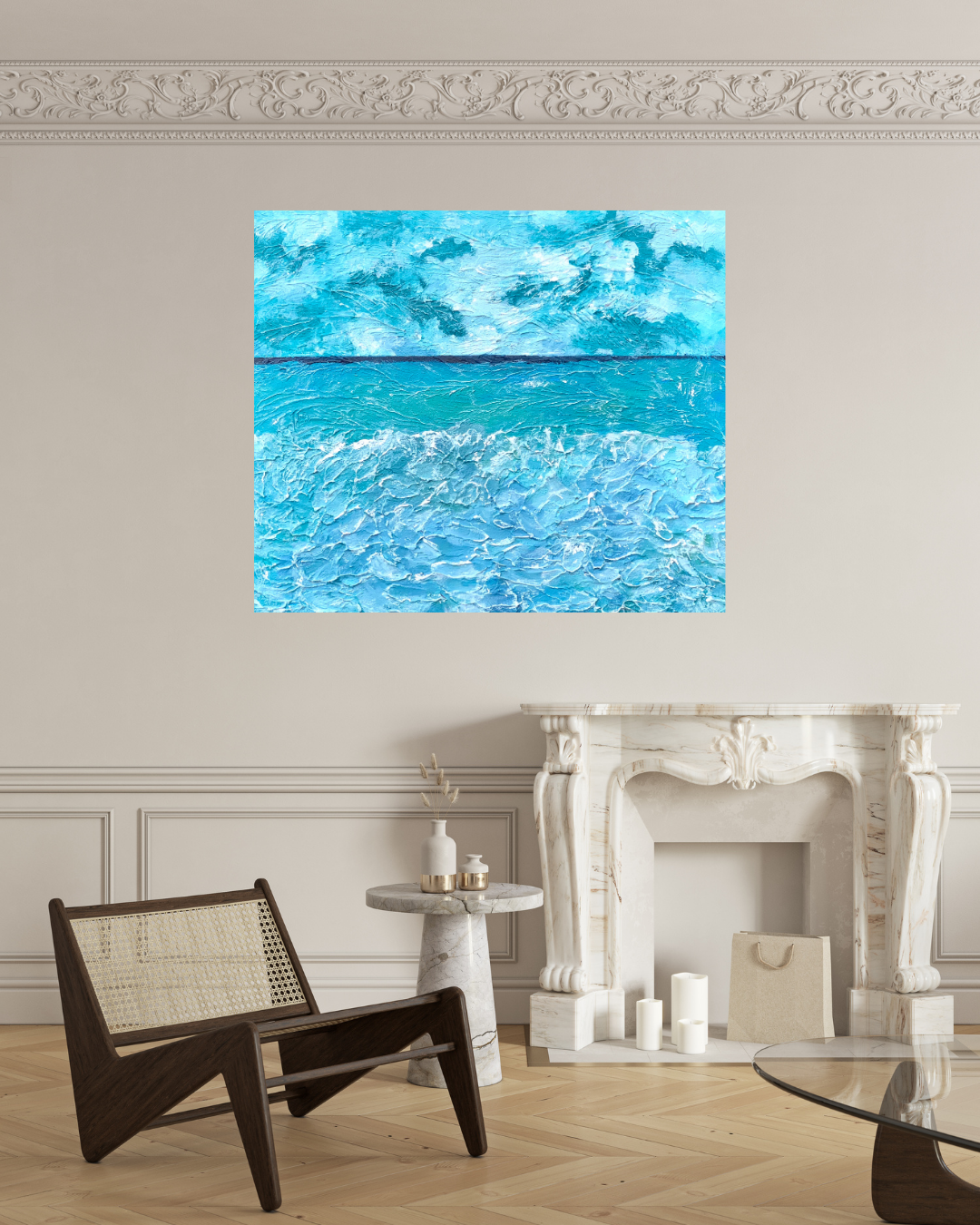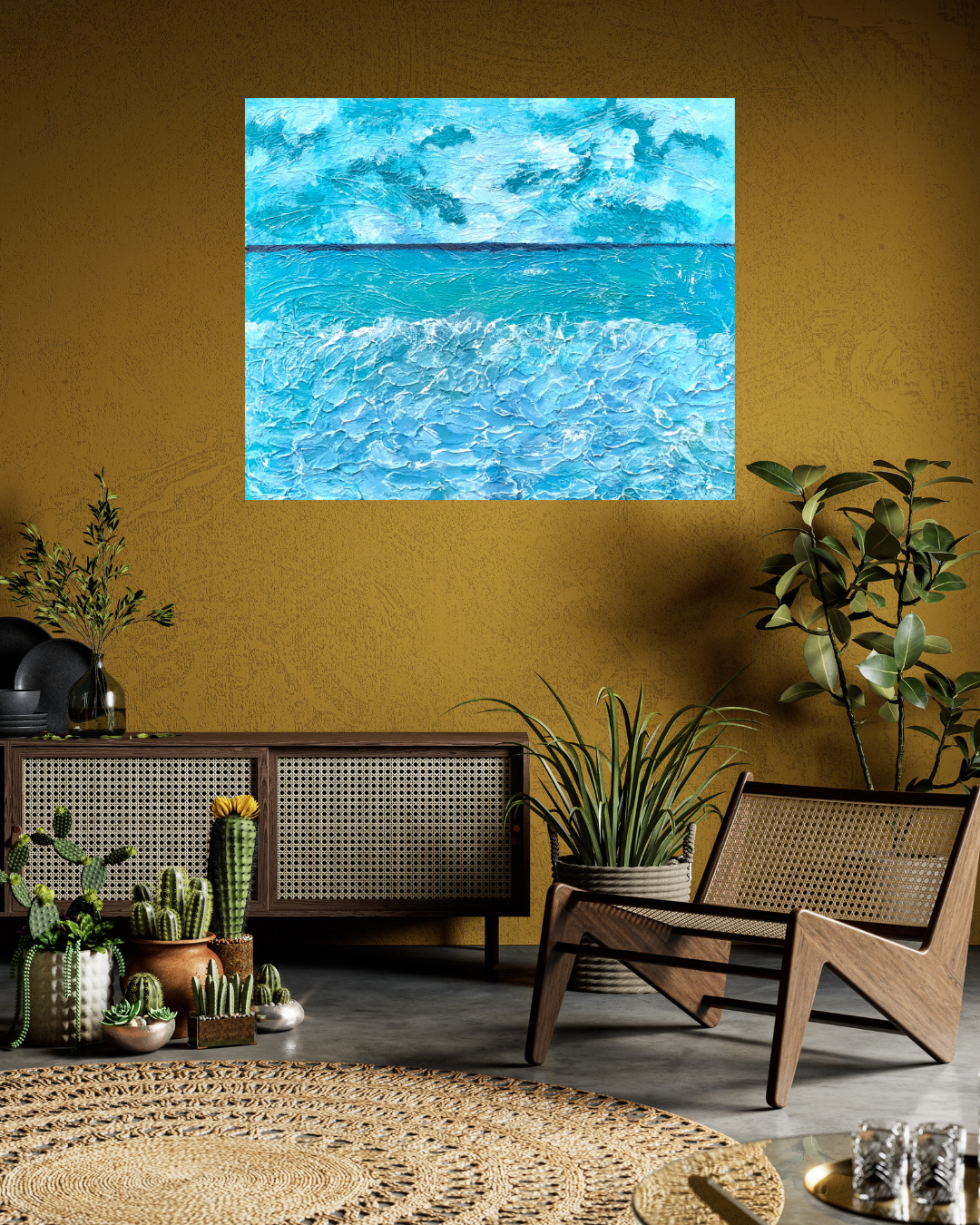 Dette værk er skabt med tekstureret teknik, hvor der er anvendt texture pasta til at opbygge dybe og sanselige lag i maleriet. Lagene er påført med spartel og malerkniv, hvilket skaber en rå og organisk overflade. Efterfølgende er værket malet i flere omgange med akrylfarver for at opnå det helt særlige udtryk, der gør maleriet unikt og levende.